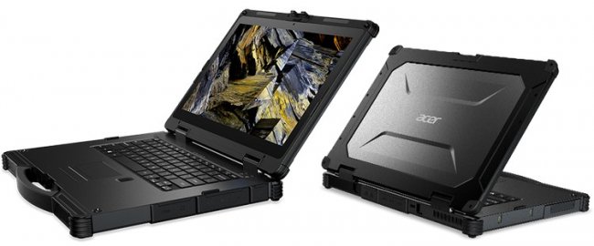 Довольно интересные защищённые ноутбуки Acer представила в серии устройств Enduro, предназначенных для полевых условий. Все устройства этой серии не боятся падений и тяжёлых условий эксплуатации, например, при низкой или высокой температуре, за счёт соответствия MIL-STD 810G. Также они характеризуются защищённостью от пыли и влаги вплоть до IP65, то есть в них не должна попадать пыль и довольно интенсивные брызги. Даже вентиляторы здесь водонепроницаемые.