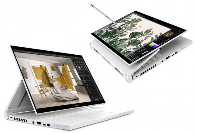 Среди прочего компания Acer представила вчера и свежие ноутбуки серии ConceptD, ориентированные на людей творческих профессий. Системы ConceptD 3 Ezel и ConceptD 3 сочетают в себе новейшие процессоры Intel Core десятого поколения, довольно мощную дискретную графику и качественные дисплеи. ConceptD 3 Ezel — это инновационный ноутбук-трансформер, предназначенный в первую очередь для тех, кто много рисует или работает с графикой с помощью цифрового пера. За счёт необычного шарнира экран ноутбука может быть зафиксирован в шести позициях, например, в планшетном режиме или под углом для более удобного рисования. Новинка доступна в версиях с 14- и 15,6-дюймовыми сенсорными экранами с разрешением Full HD, которые на 100 % охватывают цветовое пространство sRGB и имеют точность цветопередачи Delta E