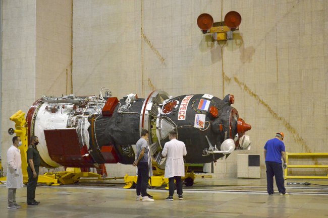 Государственная корпорация Роскосмос сообщает о том, что транспортный грузовой корабль «Прогресс МС-15» прошёл испытания в безэховой камере монтажно-испытательного корпуса площадки № 254 на космодроме Байконур.