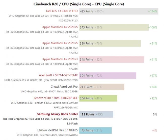 В результате одноядерная производительность старшего Lakefield оказалась на 67 % ниже, чем у младшего представителя семейства Amber Lake-Y. Более того, чип уступил даже Core m3-8100Y. Тестирование проводилось в Cinebench R20.