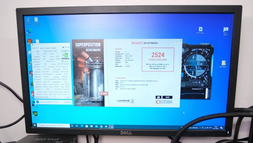 Модернизированная видеокарта корректно определилась утилитой GPU-Z, которая показала, что графический ускоритель оснащён 12 288 Мбайт памяти GDDR6. Карта была протестирована в синтетическом бенчмарке Unigine Superposition, а также в майнинге.