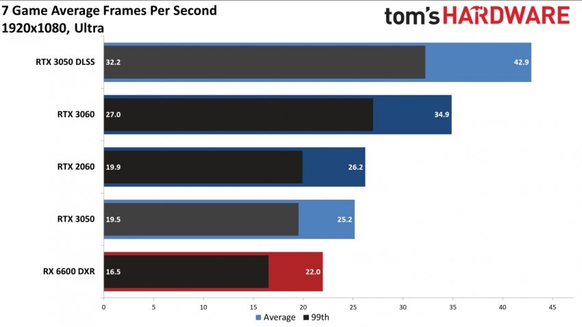 Также новинка оказалась вполне способна справиться с трассировкой лучей в реальном времени. При средних настройках графики в 1080р и средних настройках интенсивности трассировки лучей видеокарта GeForce RTX 3050 показала в среднем 40,4 FPS в семи играх. А вот при максимальных настройках ситуация уже куда хуже — средняя частота кадров в тех же играх составила 25,2 FPS.