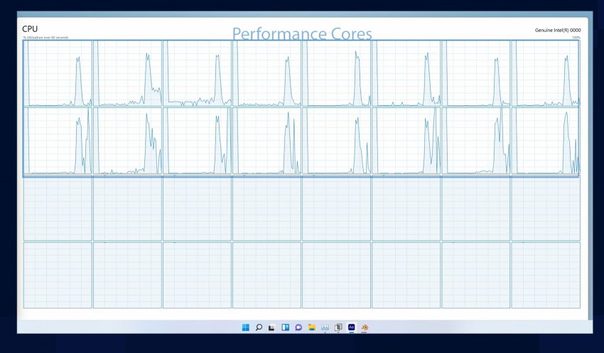 Для демонстрации работы инженерного образца Raptor Lake компания использовала программное обеспечение Blender и Adobe Premiere, показав загрузку всех имеющихся у чипа ядер.