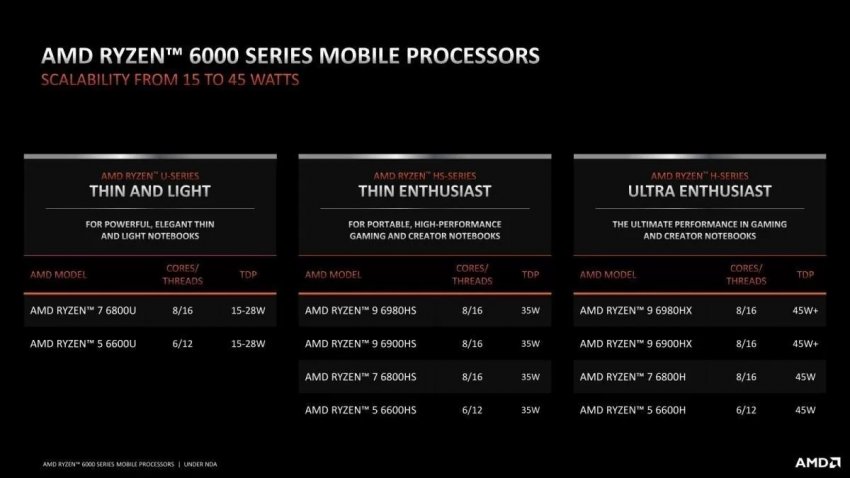 Компания AMD объявила о начале продаж ноутбуков на базе мобильных процессоров Ryzen 6000 серии Rembrandt. В продаже с сегодняшнего дня станут доступны компьютеры только на базе чипов Ryzen 6000HS. Продукты на флагманских процессорах H- и HX-серий, а также энергоэффективных чипах U-серии поступят в продажу в начале марта.