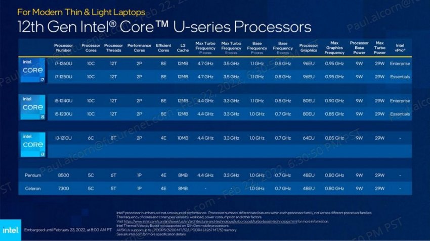 Компания Intel поделилась подробностями об энергоэффективных моделях мобильных процессоров Alder Lake, которые представлены в сериях P и U. Производитель также подтвердил, что первые ноутбуки на их основе поступят в продажу в следующем месяце.