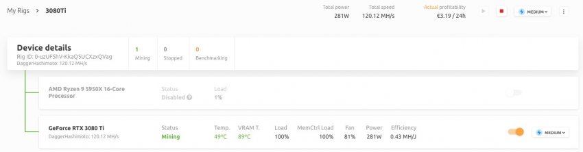 GeForce RTX 3080 Ti LHR со снятым ограничителем майнинга. Источник изображения: NiceHash