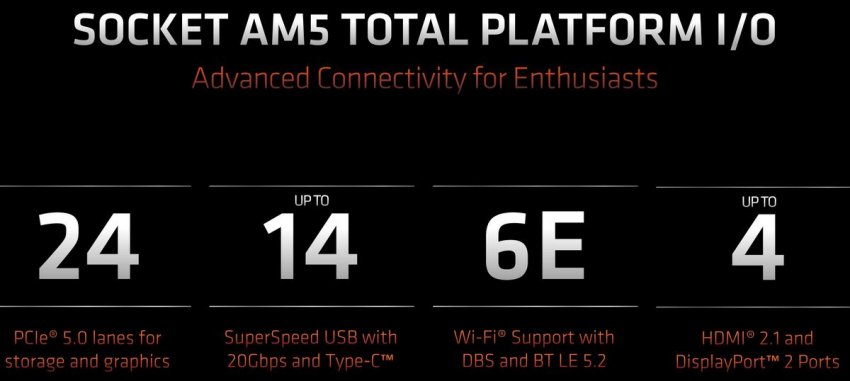 Другой важной особенностью нового чипа IO является поддержка новых стандартов. Речь идёт о поддержке памяти DDR5, а также шины PCI Express 5.0. Таким образом, AMD догнала Intel с точки зрения поддержки современных технологий в CPU — у «синих» указанные память и шину поддерживают Alder Lake-S, представленные в конце 2021 года.