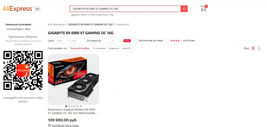 У друзей-китайцев с AliExpress видеокарту можно приобрести за 110 тысяч рублей.