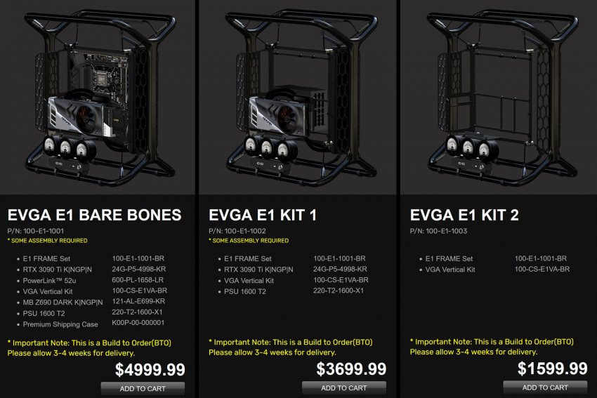 Компания отмечает, что заказавшим корпус сейчас придётся подождать доставки 3–4 недели. Чем вызвана задержка, EVGA не объясняет. Возможно, с учётом стоимости компания производит каждый корпус под заказ. Остальные же компоненты доступны по отдельности уже сейчас.