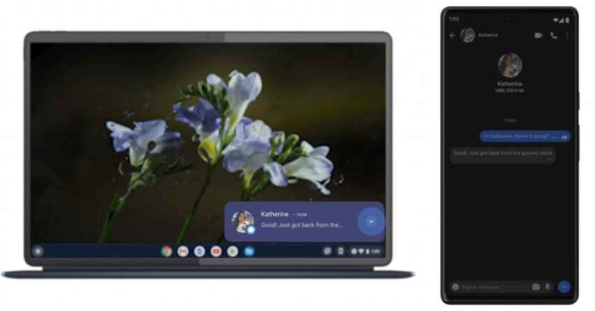 Появилась возможность отправки сообщений из приложений, включая Google Messages, напрямую в хромбуки (на манер iMessage на компьютеры Mac).