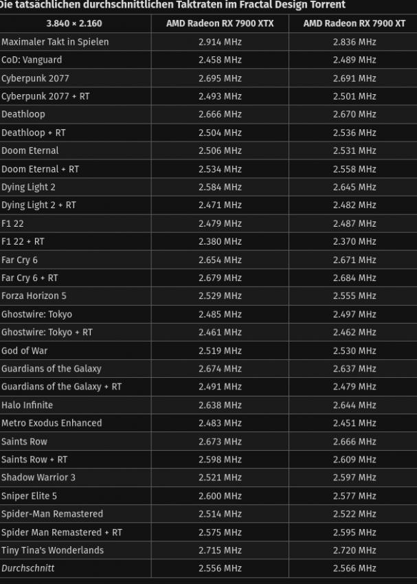 Кроме этого, пользователи сообщают и о странной ситуации с флуктуациями рабочих частот новых видеокарт Radeon. Например, @uzzi38 обратил внимание, что графический процессор Radeon RX 7900 XTX в играх может работать на частотах от 2,4 ГГц до 2,9 ГГц без каких-либо изменений в игровых настройках.