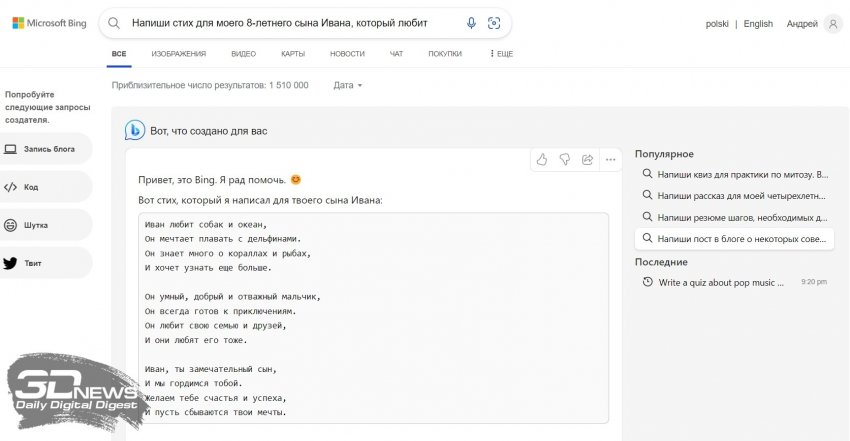Как и ожидалось, компания Microsoft провела мероприятие, в рамках которого были анонсированы новые функции для поисковой системы Bing и браузера Edge, построенные на базе нейросети, которая является основой продвинутого ИИ-чат-бота ChatGPT компании Open AI. Софтверный гигант пообещал, что эти два продукта обеспечат новый опыт при просмотре веб-страниц и поиске информации в интернете.