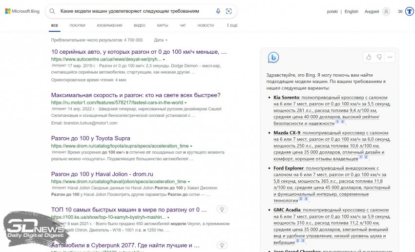 «Новый Bing», как его называют в Microsoft, получил функции интеллектуального чат-бота, за счёт чего пользователи смогут задавать вопросы и получать на них ответы на естественном языке. Основой этой функции стала обновлённая языковая модель, которая была создана разработчиками из Open AI и использовалась ранее в чат-боте ChatGPT. Речь идёт об улучшенной версии модели GPT-3.5, которую в Microsoft назвали Prometheus Model. Этот алгоритм мощнее обычного GPT-3.5, а использующий его поисковик может быстрее находить релевантную информацию и предоставлять пользователю развёрнутые ответы на его вопросы.