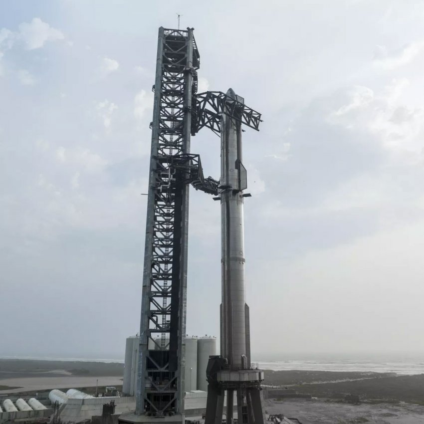 Неопределённость со стартом не мешает специалистам SpaceX работать над ракетой. В ожидании возможного запуска корабль Starship в виде прототипа Ship 24 уже установлен на ускоритель первой ступени Booster 7. Сейчас команда проводит проверку ракеты и корабля в сборе и движется к первому запуску, если он будет разрешён.