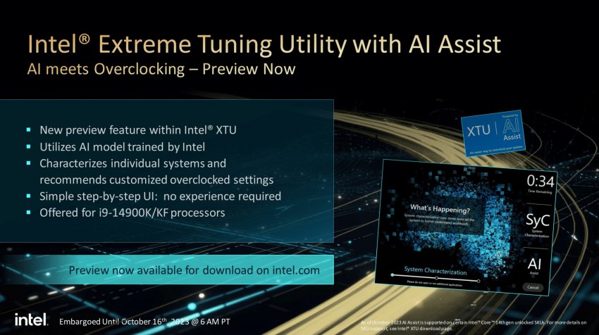Хотя Raptor Lake Refresh не получили выделенного нейронного процессора, как мобильные Meteor Lake, некоторые новые ИИ-функции они всё же получили. Плагин Intel AI Assist для утилиты eXtreme Tuning Utility (XTU) оценивает процессор с помощью алгоритмов ИИ, обученных Intel, и предлагает ряд дополнительных настроек, которые можно включить для разгона процессора. За работу алгоритма отвечают инструкции в ядрах CPU.