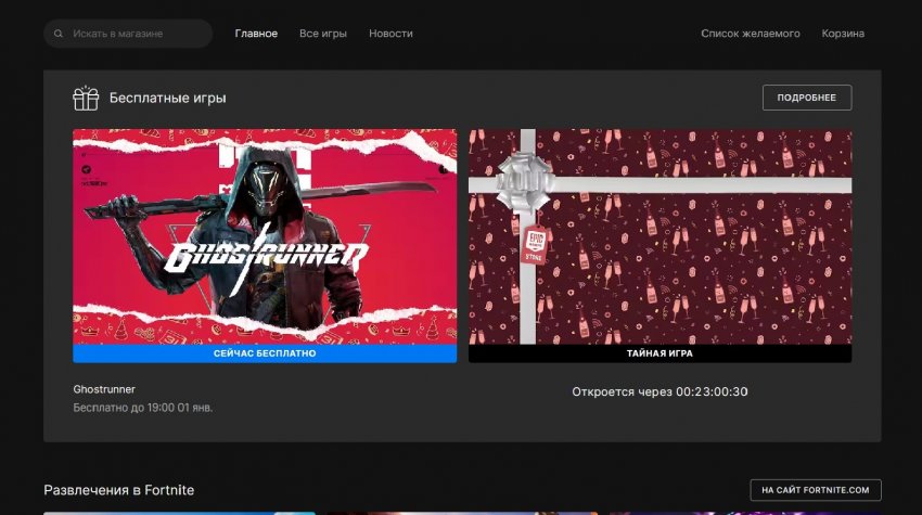 Раздача Ghostrunner в Epic Games Store закончится завтра, 1 января 2024 года, в 19:00 по московскому времени — в этот же момент бесплатной станет другая тайная игра, название которой держится в секрете.