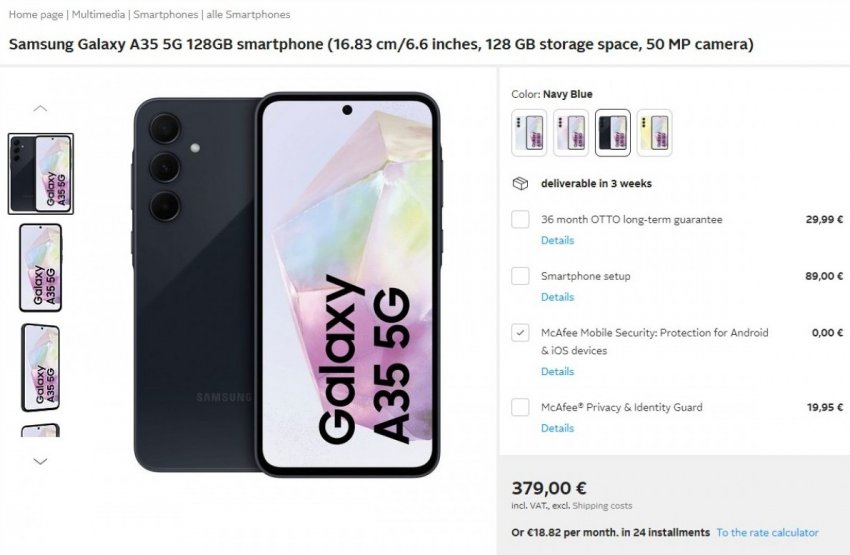 Хотя компания Samsung ещё официально не представила смартфоны среднего уровня Galaxy A55 и Galaxy A35, они уже появились на сайте немецкого ритейлера Otto. Ожидается, что официально продажи новинок Samsung планировала начать лишь 11 марта.