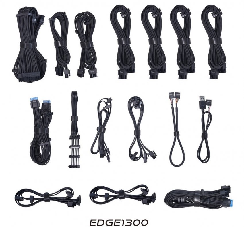 Блоки питания оснащены разъёмами 12V-2x6 (12VHPWR) для подключения видеокарт. Входящие в комплект кабели питания 12VHPWR имеют двуцветные коннекторы, указывающие на их правильное подключение в разъём.