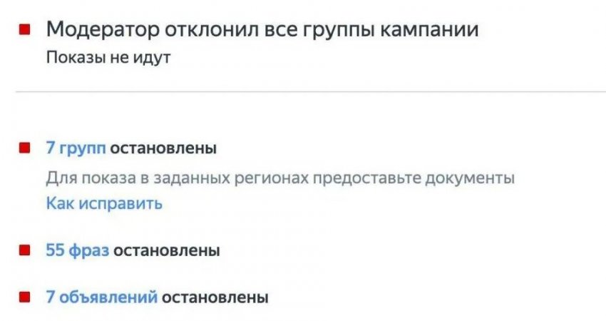 «У нас шла рекламная компания, и “Яндекс” все порезал», — сообщил Bits.media основатель InDeFi SmartBank Сергей Менделеев, приславший скриншот. Он добавил, что в настройках рекламной кампании, появились уведомления об остановке любой активности.
