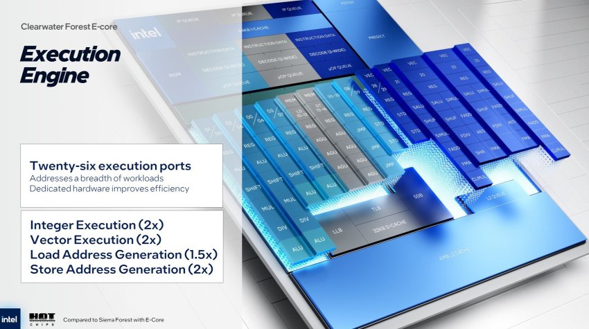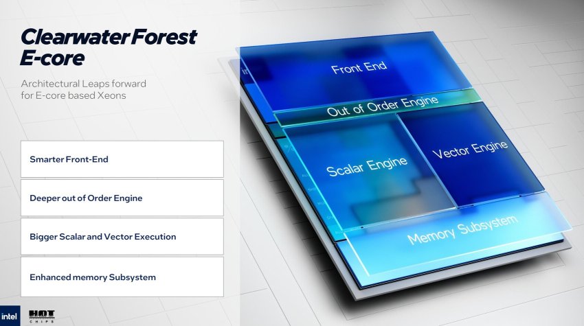 На ежегодной технологической конференции Hot Chips, которая в этом году проходит с 24 по 26 августа, компания Intel поделилась первыми деталями о будущих процессорах Xeon серии Clearwater Forest. В рамках этой серии будут выпускаться процессоры, оснащённые только энергоэффективными E-ядрами.