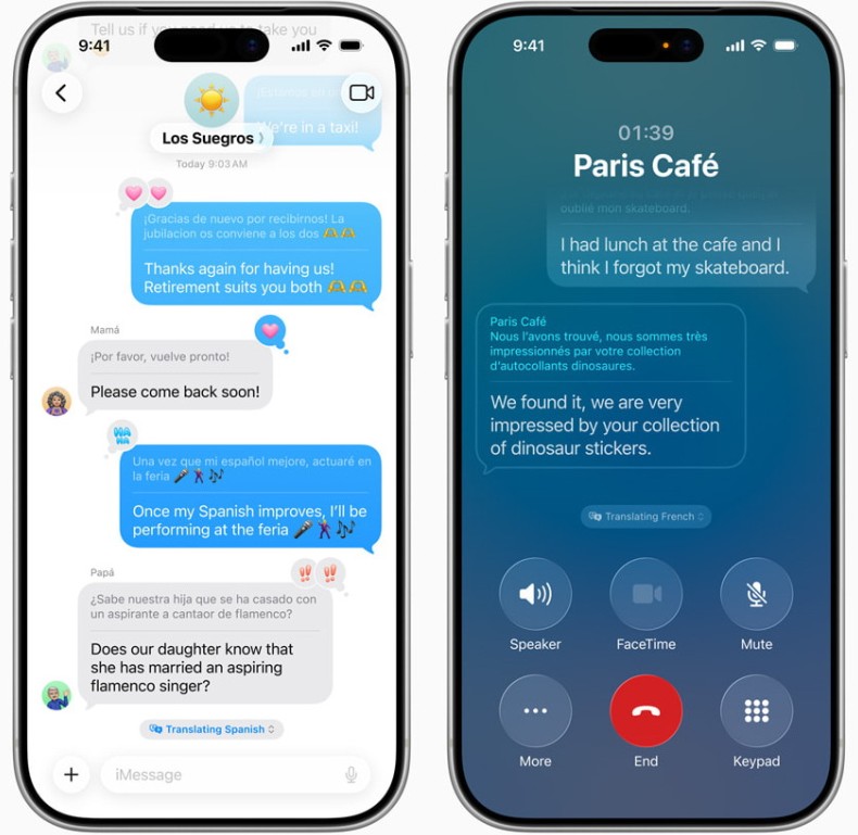 В iOS 26 расширены возможности Apple Intelligence. «Визуальный ИИ» анализирует всё, что находится на экране, позволяя добавлять события из флаера в «Календарь», переводить текст или задавать вопросы ChatGPT об изображениях и информации, не выходя из приложения. Быстрый перевод работает в «Сообщениях», FaceTime и «Телефоне», предоставляя перевод субтитров на устройстве и даже аудио в режиме реального времени во время звонков.
