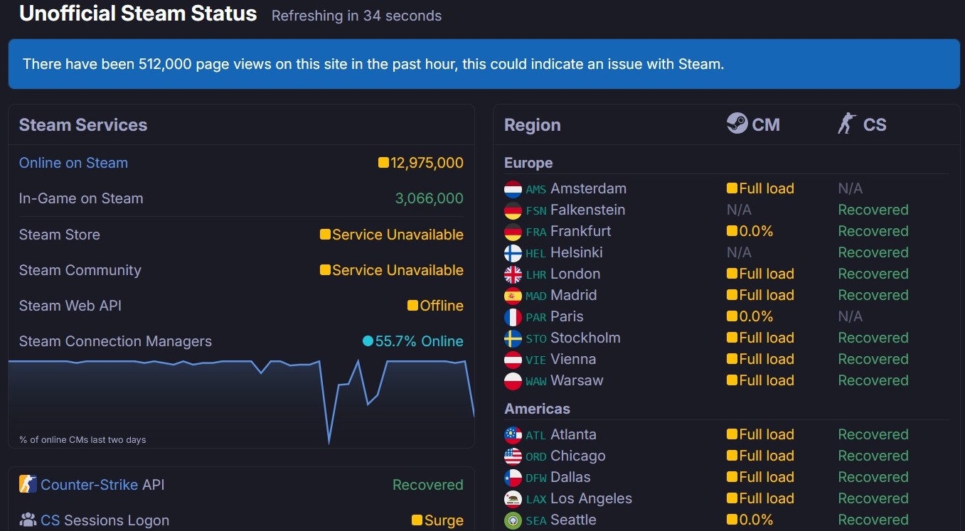 Журналисты PC Gamer сообщают, что около 20:00 МСК сервис понемногу начал приходить в себя: магазин и сообщество стали загружаться, однако на скорости заметно ниже обычной.