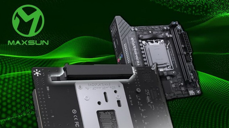 Компания MaxSun представила материнскую плату MS-Terminator B850 BKB WiFi формата Mini-ITX, предназначенную для процессоров AMD Ryzen 7000, 8000 и 9000. Особенность новинки заключается в том, что её разъём PCIe 5.0 x16 расположен на изнанке. Такой же особенностью обладает ранее выпущенная плата Terminator B760 BKB D5 WiFi для процессоров Intel.