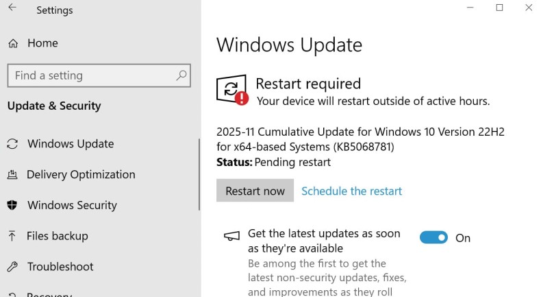 Из-за ошибки некоторые устройства не смогли зарегистрироваться в программе ESU. Сегодня Microsoft выпустила экстренное исправление для решения этой проблемы. Если вы используете Windows 10 Enterprise LTSC или участвуете в программе ESU, то можно установить это обновление как обычно — перейдя в «Центр обновления Windows» и вручную выполнив проверку наличия обновлений. Поскольку это обновление является обязательным, оно автоматически установится и предложит перезагрузить компьютер после завершения установки.