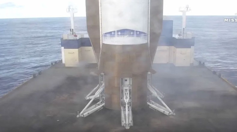 Первая ступень ракеты New Glenn после спуска на баржу. Источник изображения: Blue Origin