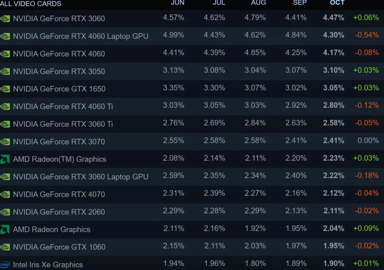 Статистика самых популярных видеокарт в Steam