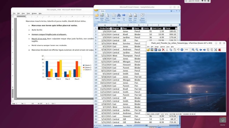 Эксперты The Register протестировали официальные пакеты Wine 11.0 на последней версии Ubuntu 25.10 под GNOME с использованием Wayland. По их отзывам, «всё работало отлично», им без проблем удалось установить и запустить 32-бит просмотрщики Microsoft Word Viewer и Excel Viewer из центра загрузки устаревших обновлений. 64-бит версия программы просмотра изображений IrfanView также установилась и запустилась с первого раза. Исследователи отметили, что пакеты WineHQ устанавливались в /opt/wine-stable, не прописывая символические ссылки в /usr/bin, но после их ручного добавления приложения запускались без проблем.