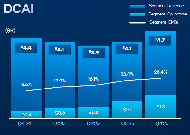 В сегменте ASIC, за которое отвечает получившая определённую независимость Altera, выручка Intel выросла более чем на 50 % по итогам всего 2025 года, а в четвёртом квартале увеличилась на 26 % последовательно. В прошлом квартале она вышла на годовой приведённый уровень более $1 млрд.