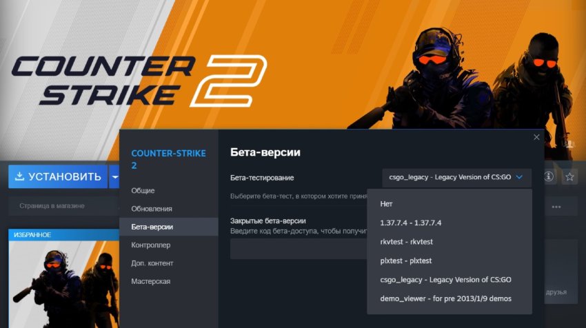 С тех пор эта устаревшая (legacy) сборка CS:GO со всеми функциями, кроме официального матчмейкинга, была доступна через вкладку бета-версий в свойствах Counter-Strike 2. Её поддержка прекратилась ещё 1 января 2024 года.