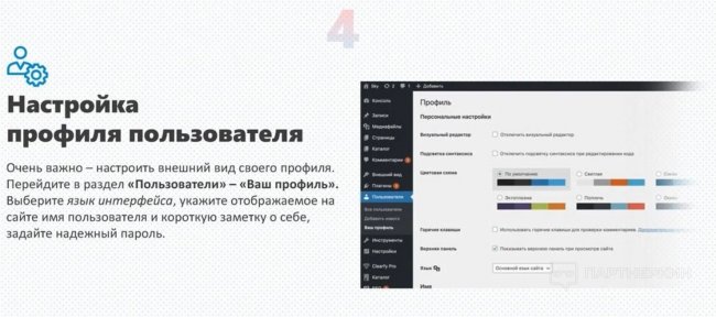 4. Настроить профиль пользователя. Это важно, т.к. многие премиум темы на Wordpress показывают информацию о вашем профиле пользователям, а также профили редакторов, которые наполняют ваш сайт.