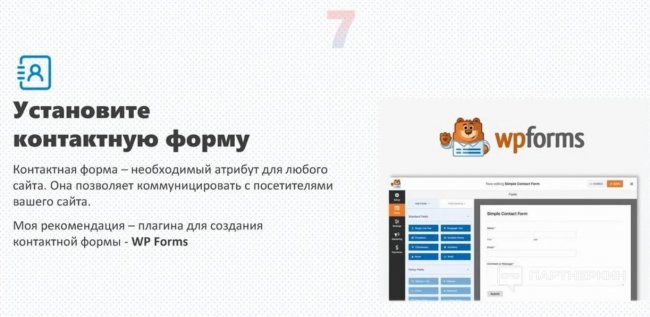 7. Установить контактную форму на сайте. Рекомендация от Ивана: плагин для создания такой формы под названием WP Forms.