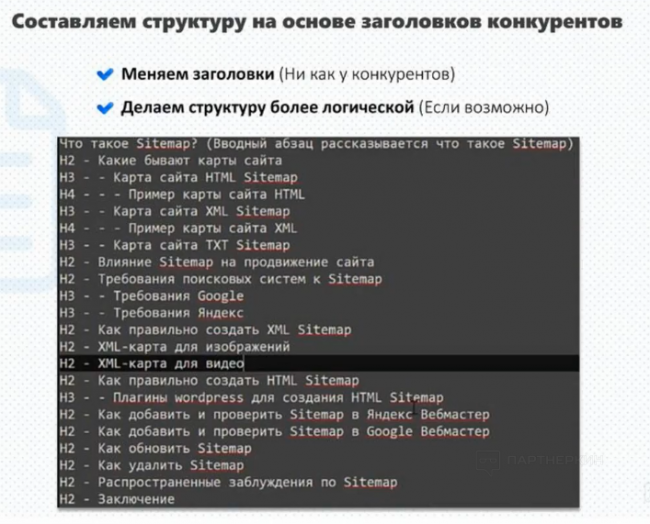 3. С этими заголовками работаем, перефразируем их. Делаем структуру более логичной. Плюсом будет, если вы разбираетесь в этой теме. Пример: