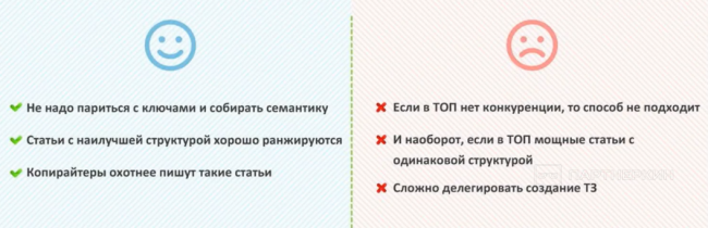 Как делаются статьи? Собирают структуру статей с помощью семантики и на основе статей конкурентов, из которых берется самое лучшее. Получается ТЗ, которое передается копирайтеру, он пишет статью на эту тему. Такой подход с высокой вероятностью проведет статью в ТОП выдачи Яндекса. Разберем по порядку: