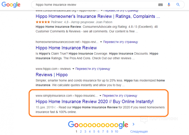 В начале 2018 года Эл добавил на сайт 9 продуктов. Он создал главные страницы продуктов, такие как «Котировки по страхованию жилья», а затем сделал обзоры основных партнерских продуктов, например, «Обзор страхование жилья от Hippo» и дополнял их страницами с контентом на тему «что покрывает страхование жилья». Кстати, обзор страховки Hippo от SimpliInsurance сейчас входит в ТОП 10 по запросу «hippo home insurance review».