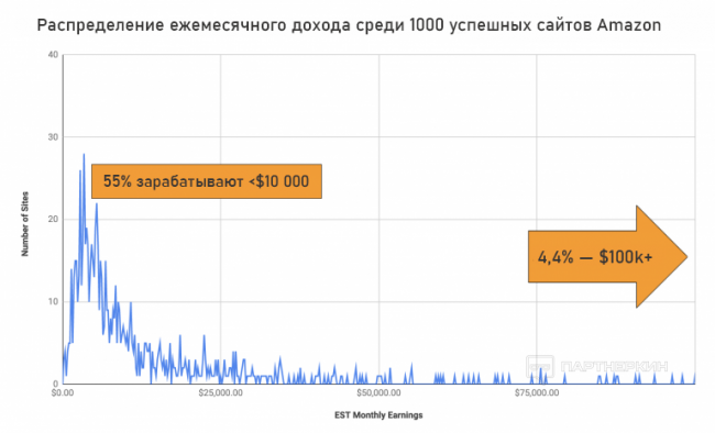 Многие из них зарабатывают до $10 000 в месяц, но есть 44 сайта, у которых доход свыше $100 000, а у нескольких — свыше $1 000 000 в месяц.