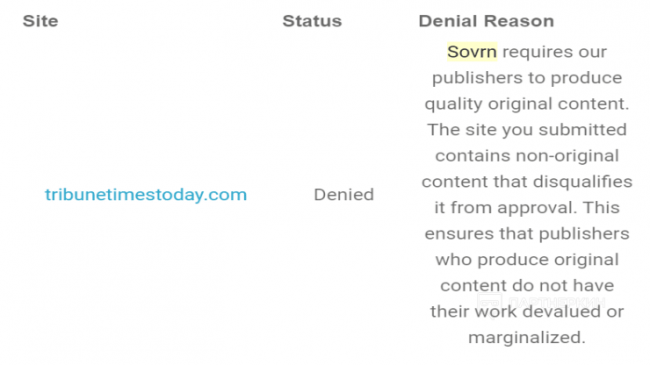 Рекламная сеть Sovrn изначально отказала моему сайту, потому что он не соответствовал стандартам оригинального контента: