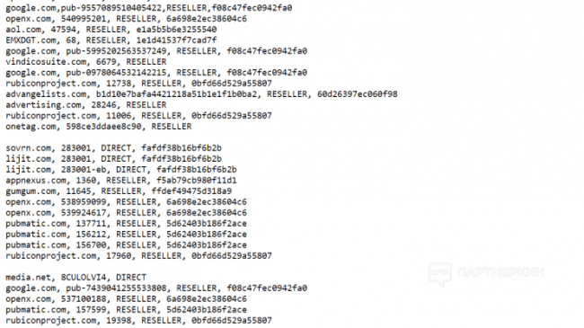 С рекламными сетями разобрались. Идем далее. Глядя на информацию, которую нужно было добавить в ads.txt, я обнаружила, что разрешила продавать рекламное пространство на своем сайте не только Infolinks, Media.net и Sovrn, но и их партнерам: AppNexus, GumGum, OpenX, Rubicon Project и Google.