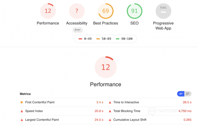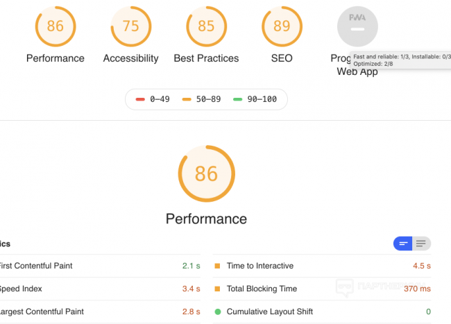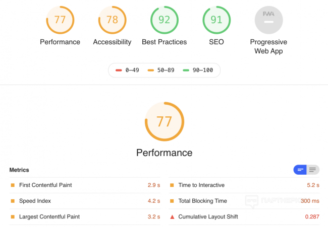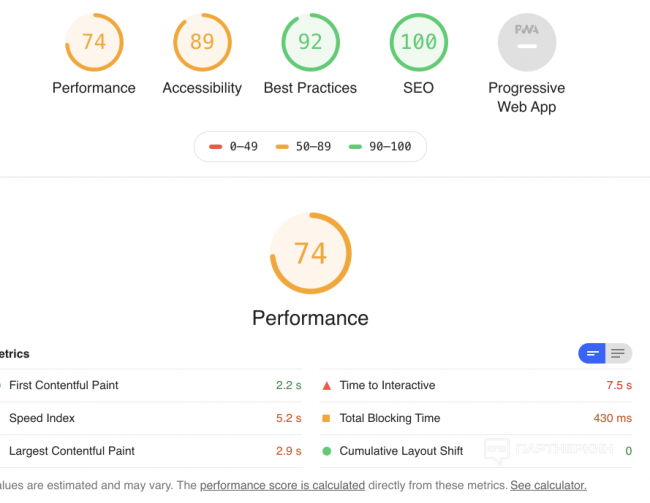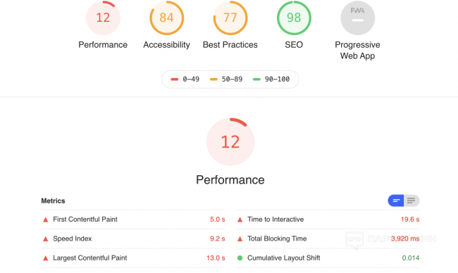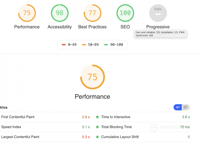 И гугл в панели вебмастера пишет - Нужно увеличить скорость. Значение показателя LCP слишком велико: более 2,5 с (мобильные устройства).