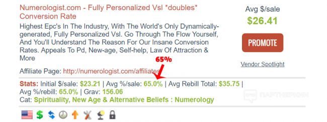 Мало того, что нет недостатка в людях, которые ищут информацию по этой теме, они еще и покупают продукты, связанные с нумерологией. Например, один из самых популярных офферов в бурже как раз предназначен для любителей нумерологии: