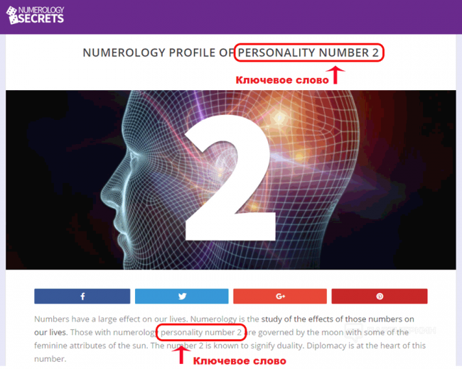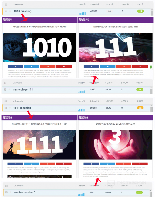 Основным ключом сайта NumerologySecrets.net предсказуемо является «нумерология», но каждая страница нацелена на определенное ключевое слово, например, «значение 333», чтобы охватить всю тематику и собрать как можно больше трафика.