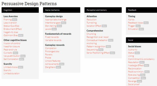 Платные обучающие фишки — разработчики ведут онлайн курс по созданию эффективного дизайна с точки зрения психологии и разных инструментов влияния на действия пользователей. В дополнение к этому на сайте продается колода карточек с разными паттернами поведения, что могут пригодиться в проектировании.