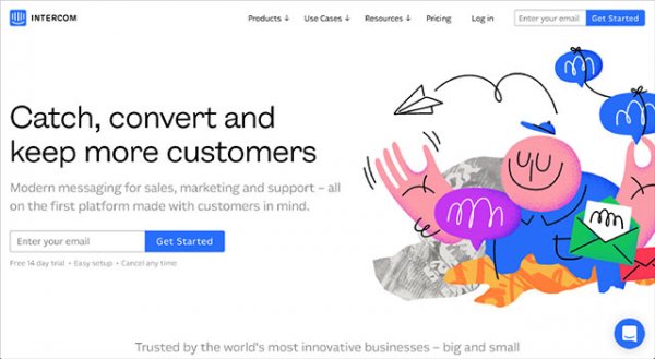 Есть элемент для призыва к действию (CTA). Лучший вариант у Intercom — кнопка CTA объединена с запросом на введение адреса электронной почты.