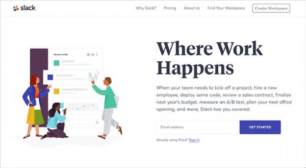 Главное изображение: ознакомившись вариантом из Slack, было бы неплохо постараться создать иллюстрацию, демонстрирующую функции вашего приложения/сервиса, но без использования скриншота.