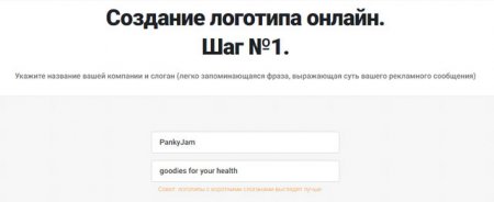 После перехода на страницу конструктора появится форма для заполнения названия и слогана. Придумайте и введите их в соответствующие поля. Стоит помнить три рекомендации по неймингу: