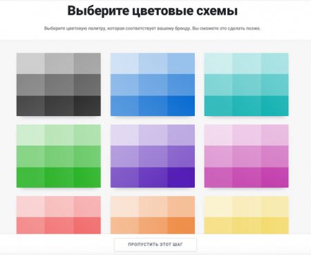 На следующем шаге определитесь с палитрой будущего дизайна. На основе выбранных цветов сгенерируются несколько разновидностей логотипов. Этот этап разрешается пропустить и вернуться к нему позже.