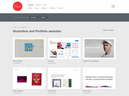 В сети также можно найти ресурсы, где собрано сразу несколько портфолио дизайнеров иллюстраторов. В одном случае, судя по всему, это компании, представляющие услуги нескольких художников и работающие с разными авторами. Есть также сервисы, просто собирающие лучшие макеты/дизайны для вдохновения.